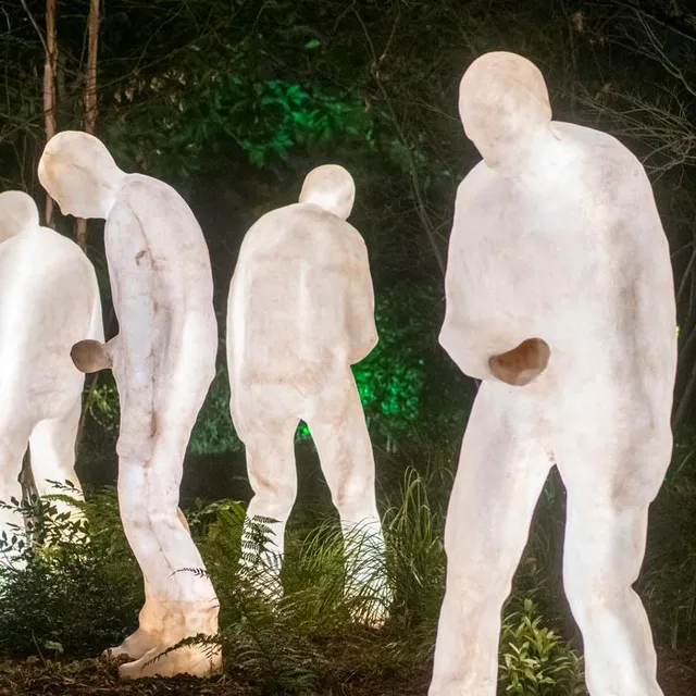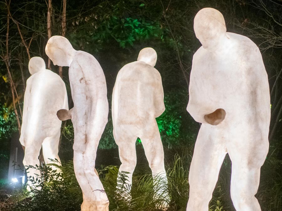 For this work, they asked the AI to generate an image of a light art installation for a light festival. But this is just an image. What interested both Atelier Haute Cuisine and Amsterdam Light Festival was how this image could be brought to life. The resulting artwork is a combination of an AI impression and the real techniques, hands and materials that bring that vision to life. AI envisaged the humans all looking down, hunched over and weighed down by something. And they seem to be following each other in a herd-like manner: a rather shockingly accurate yet scathing critique of our modern lives.