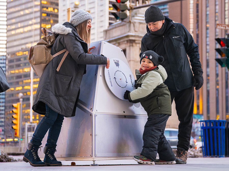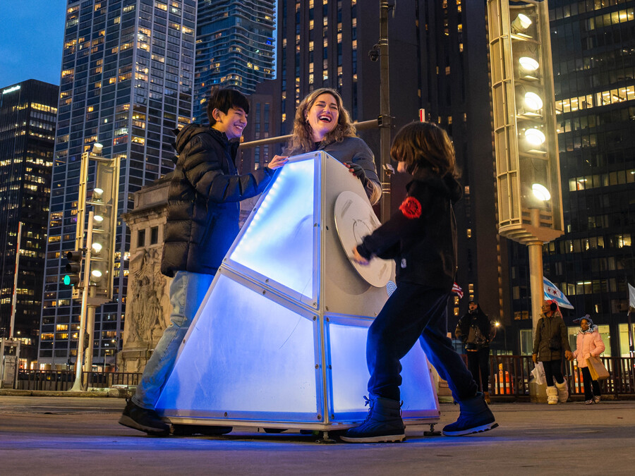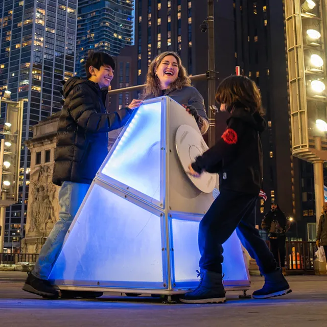 The Iceberg Trail is the result of three years of research and development. Each of the six icebergs is equipped with a state-of-the-art, human-powered mechanism that activates unique light displays and custom music. What makes this experience truly special is that each iceberg accumulates energy, offering users up to 12 minutes of experience after just 20 seconds of interaction. Together, the six icebergs are bringing much-needed light and laughter to Boston during the cold winter months.