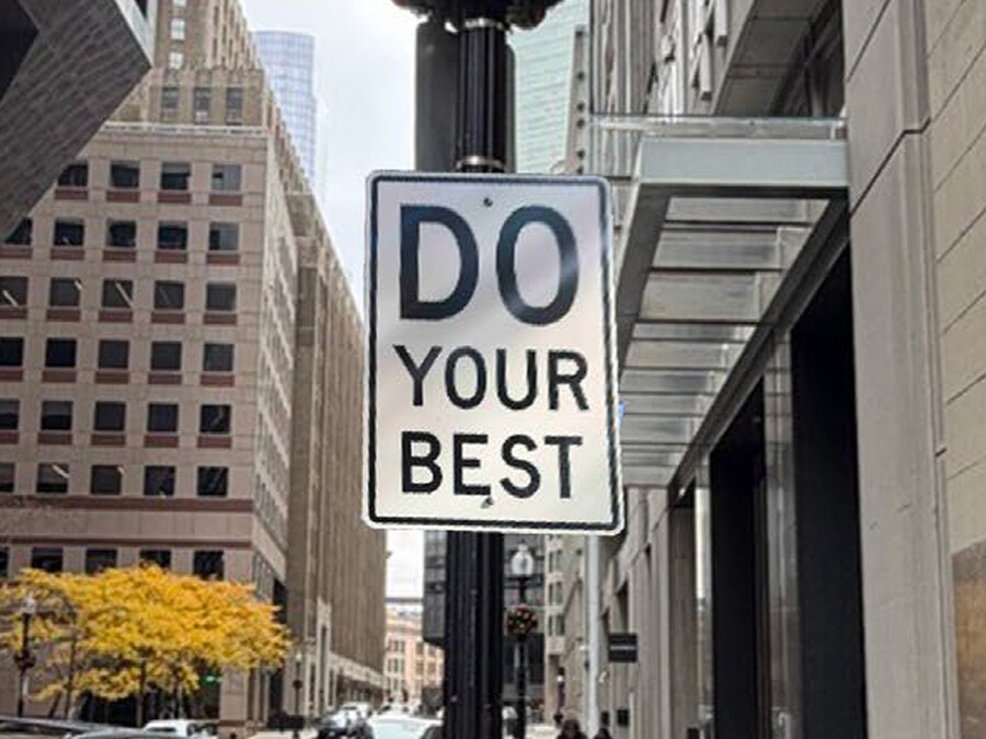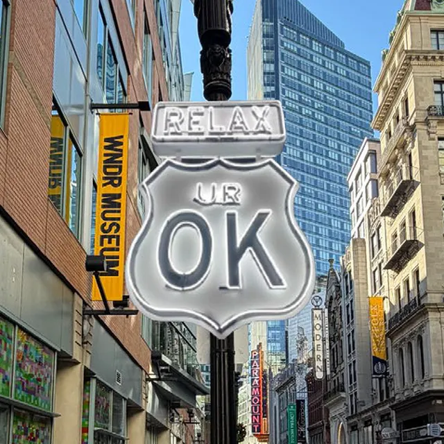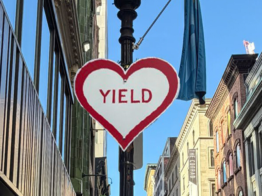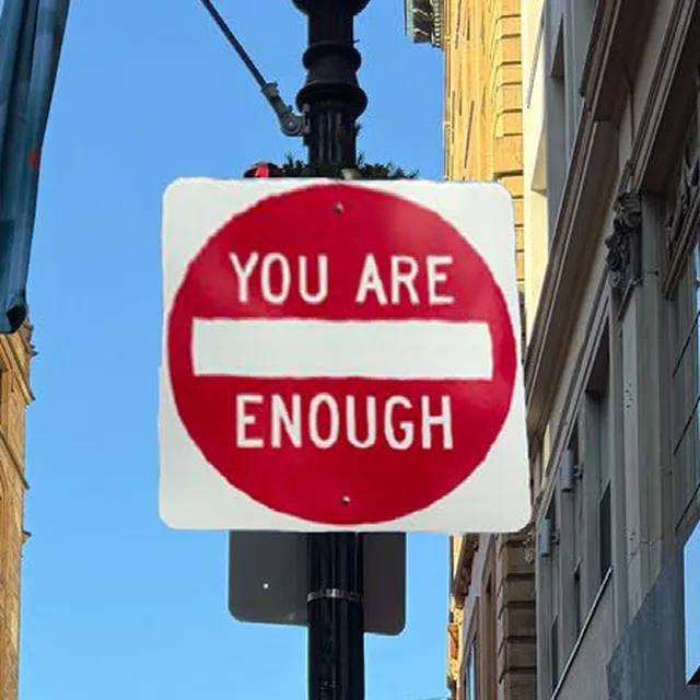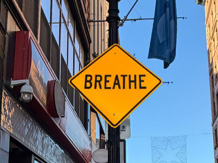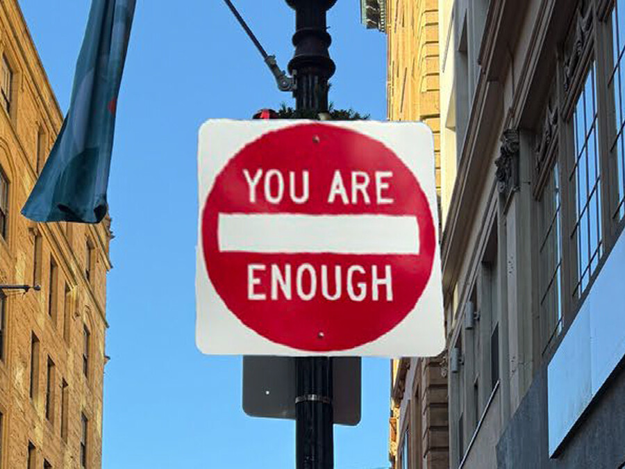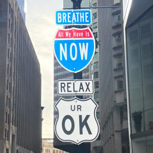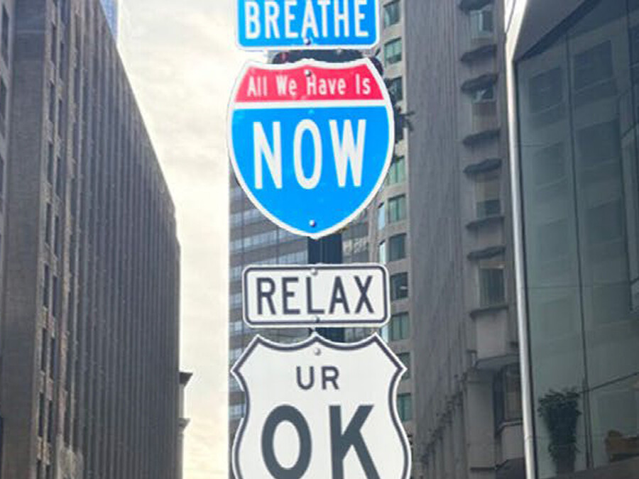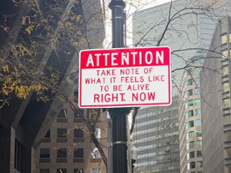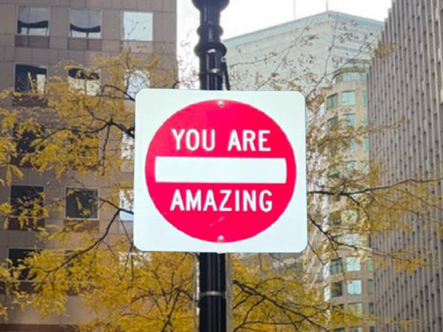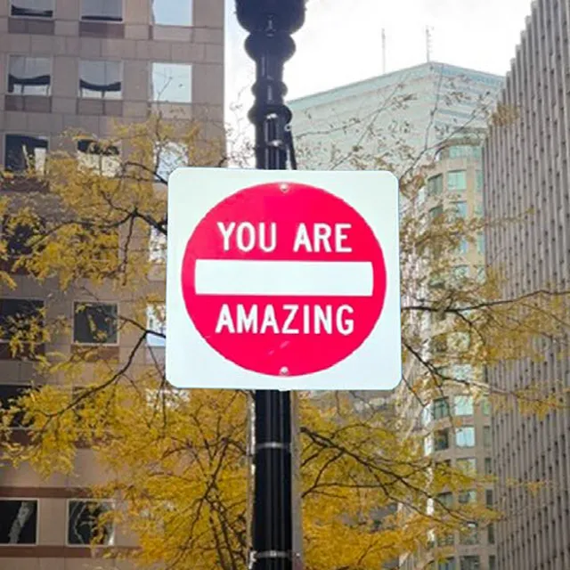 “The Word on the Street” uses the materials and visual language of street signs, but replaces the traditional negative wording (Stop, Do Not Enter, Wrong Way…) with positive affirmations, “The Word on the Street” seeks to provide something that is missing from our daily visual diet. In this way the work aims to change how the viewer interacts with the world at large.